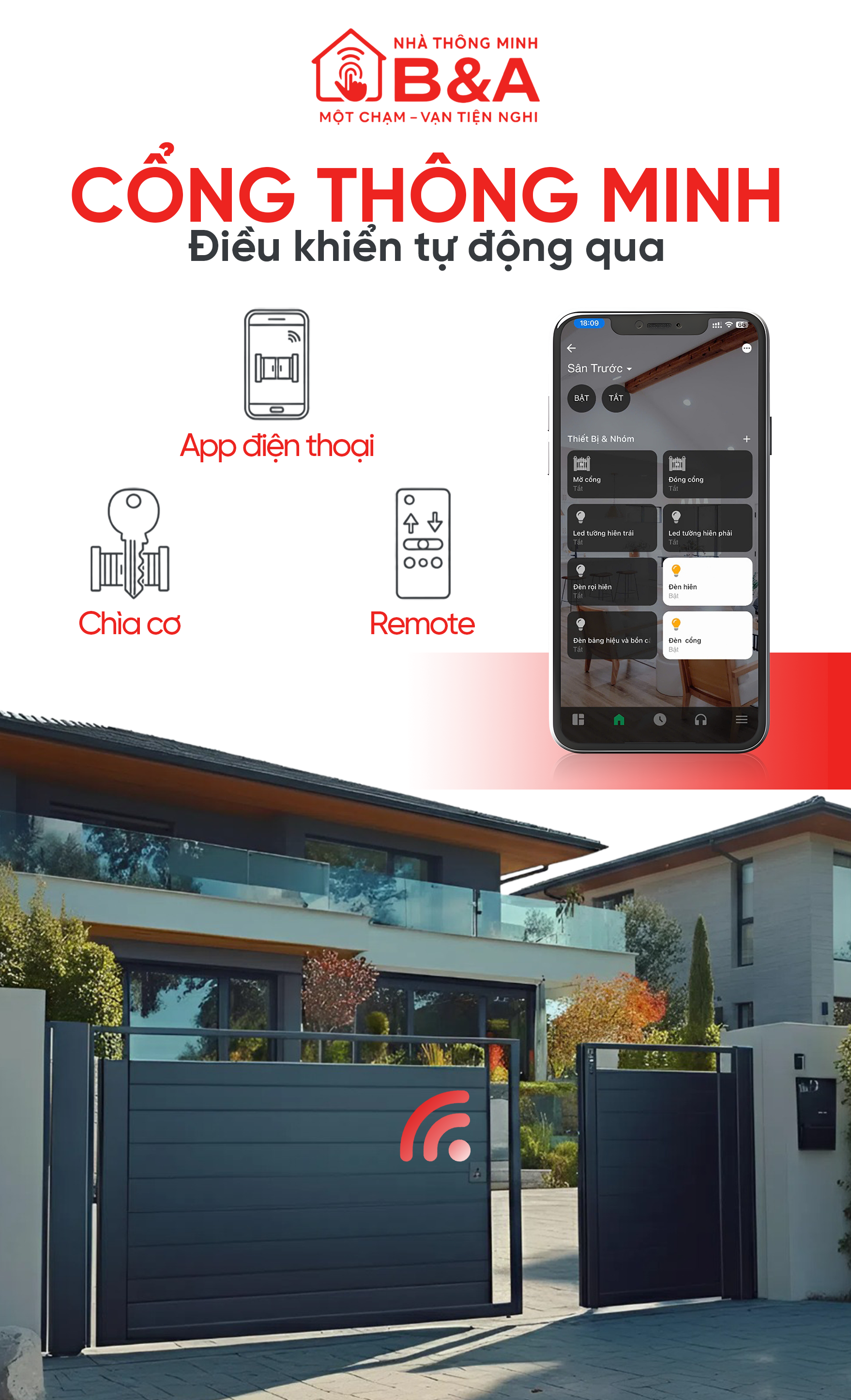 🎯 Tất cả dòng cổng đều có thể kết nối với hệ thống app trên điện thoại để đồng bộ nhà thông minh.